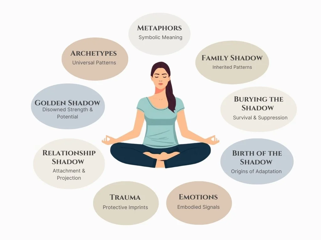 Our training prepares practitioners to recognize and engage shadow material as it appears across developmental, relational, emotional, and symbolic domains. Through this framework, practitioners learn to work with origin stories and adaptations, trauma and protective patterns, relational and family dynamics, emotional intelligence, archetypal forces, and both the wounded and gifted aspects of the psyche. This integrated approach allows practitioners to meet complexity with clarity—supporting deep integration, resilience, and internal freedom.